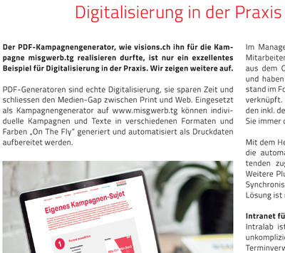 In der Märzausgabe des "TGVaktuell", dem Magazin des Thurgauer Gewerbeverbandes konnten, wir einen Artikel zum Thema "Digitalisierung in der Praxis" platzieren.