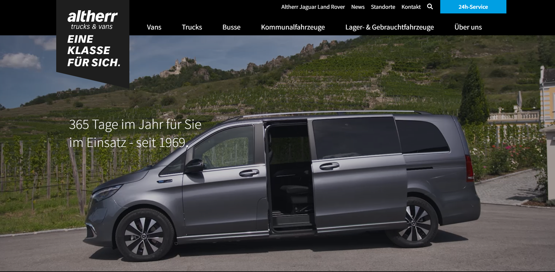 Die Altherr Nutz- und Kommunalfahrzeuge AG, Nesslau und Schaan, betraute uns mit der Umsetzung Ihres Internetauftrittes, der Ihre Angebote im Bereich Trucks & Vans sowie Ihre Angebote als Jaguar und Landrover-Partner vorstellt. Dazu finden Sie hier mehr Informationen zu dieser Referenz.