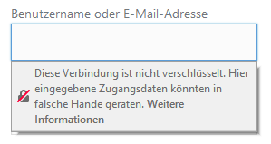 Eine weitere Variante der Warnung vor unsicheren Websites ist der Hinweis bei der Eingabe eines Formularfeldes: