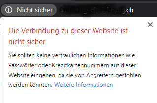 Wahrscheinlich sind Sie auch schon auf eine solche Meldung wie unten im Bild gestossen und waren irritiert über diese Meldungen. Viele Webseitenbesucher nehmen diese Warnung ernst und surfen dann nicht zur Seite weiter. Damit haben Sie auch in Windeseile einen potentiellen Kunden verloren.