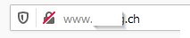 Manchmal sehen Sie auch nur einfach einen Hinweis in Form eines durchgestrichenen Schloss Symbols in Ihrer Browserleiste links der Webseiten-Adresse, wie in folgenden Beispiel dargestellt: