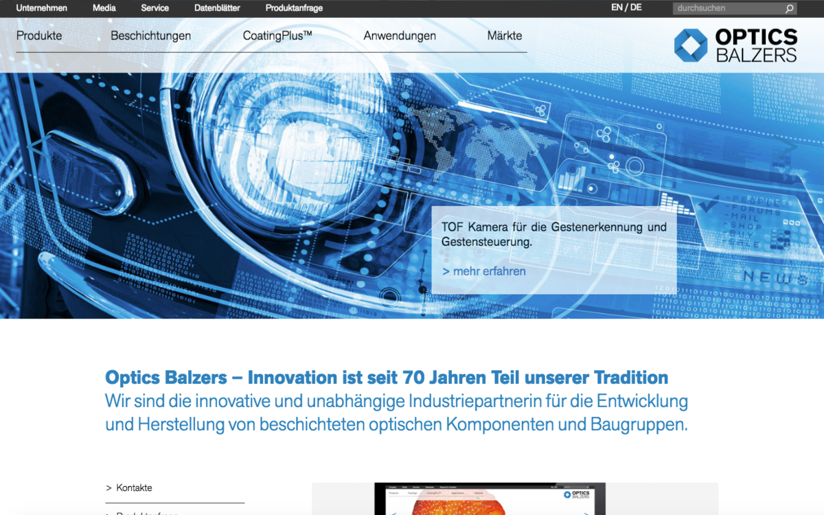 Balzers eine Global Corporate Website, welche mehrsprachig und Full