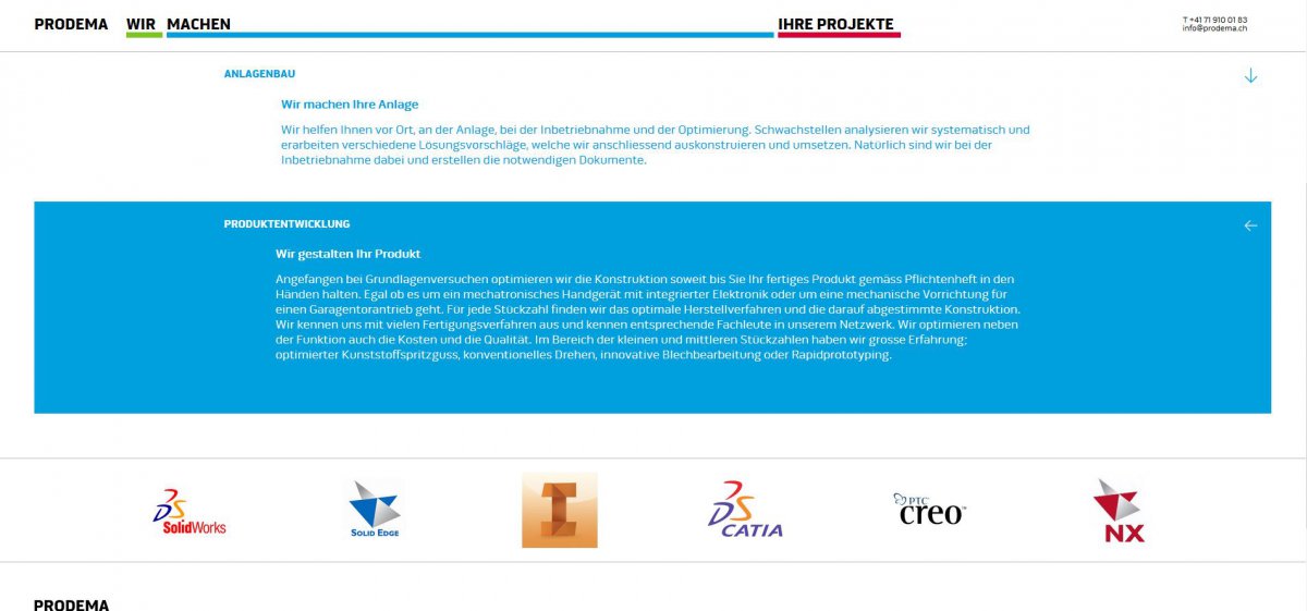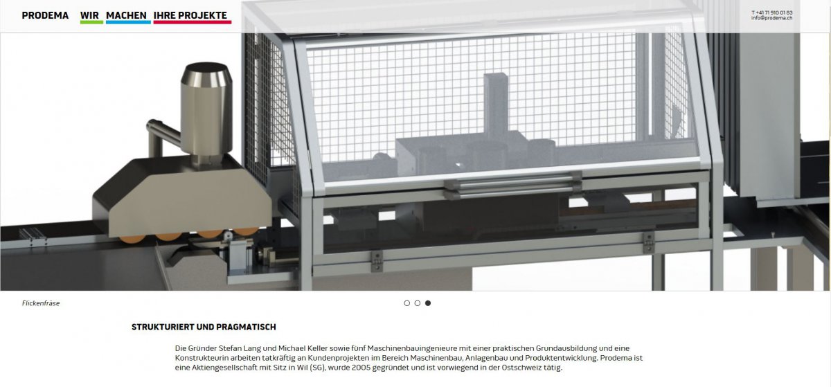 Die Prodema ist eine Engineering AG, die diversen Projekte für Ihre Kunden im Bereich Maschinenbau, Anlagebau und Produktentwicklung umsetzt – vom Konzept über den Entwurf bis zur Herstellung des Produkts.