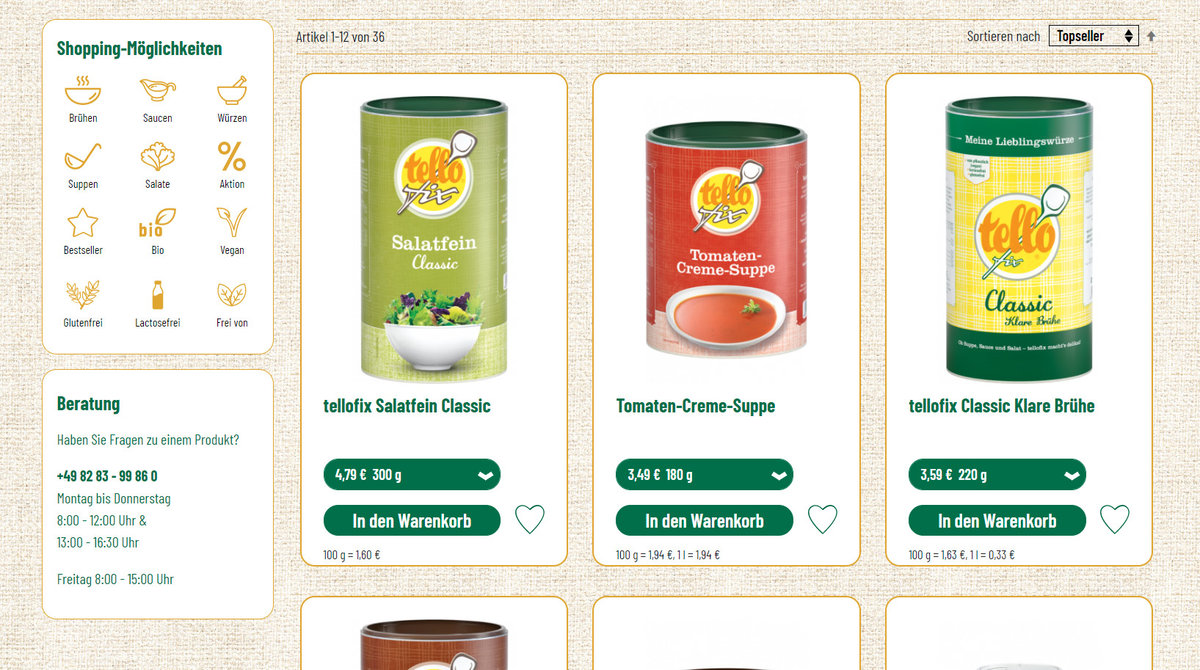 Die tellofix Classic Klare Brühe der Inter-Planing GmbH zählt bis heute zu den beliebtesten Gemüsebrühen und Allwürzmitteln in Süddeutschland. Dieser Erfolg beruht auf einer einfachen Rezeptur: Oskar Schorer kreierte tellofix Classic mit viel Liebe zum Detail in seiner Familienküche. Diese Prise Heimat und Ursprünglichkeit schmeckt man in der tellofix Gemüsebrühe genauso wie in jeder mit tellofix gewürzten Speise.Seit 2006 ist tellofix bzw. die Inter Planing GmbH Teil der Hügli Gruppe.